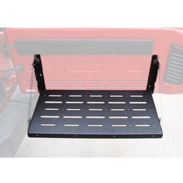 Gemaakt van hoogwaardig aluminium door OFD Offroad Fabrication. Dankzij de duurzame constructie kunt u het product zelfs in de meest extreme offroad-omstandigheden gebruiken - wanneer u ruimte nodig heeft voor uw laptop, snack of zelfs een grote fles water. Eenvoudig te monteren, geïnstalleerd in de achterklep past perfect bij uw originele Jeep Wrangler JK. Daarnaast heeft het product rubberen blokken die nog beter beschermen tegen geluid.