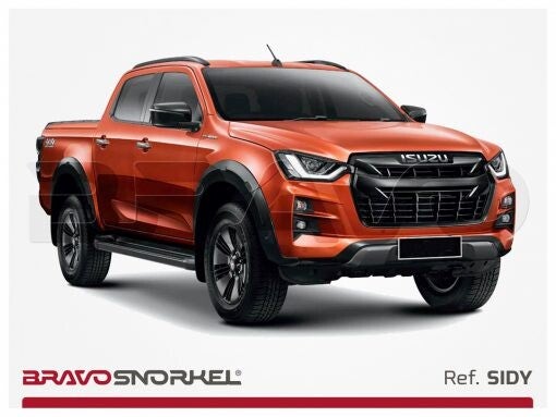 De Bravo snorkel voor de Isuzu D-max vanaf 2020 en de montage aan de rechterzijde.