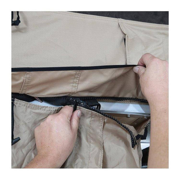 Universele tentbijlage van Smittybilt. De Smittybilt Tent Annex kan eenvoudig worden vastgemaakt aan de Smittybilt Overlander daktent om extra ruimte en privacy te bieden wanneer u dat nodig heeft. Het bijgebouw kan gemakkelijk in enkele minuten aan de overlandertent worden bevestigd met behulp van duurzame en robuuste ritsen. Gemaakt van hetzelfde duurzame met polyurethaan geïmpregneerde polyester, zal dit bijgebouw bestand zijn tegen de zware omstandigheden die worden verwacht bij verkenning over land, en is het de perfecte aanvulling op de overlandtent wanneer er extra ruimte nodig is.