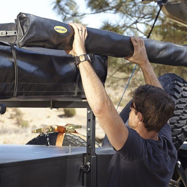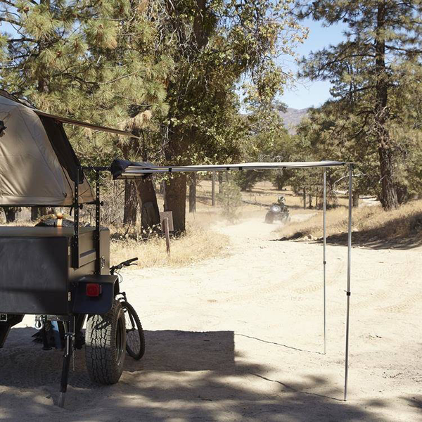 Intrekbare luifel SMITTYBILT afmetingen: 195x195 cm gemaakt van zware Polyestru 600 Sterke en lichte aluminium constructie waterdichte opbergzakken op zichzelf staande telescopische poten passen op de meeste dakdragers scoyote tan - identiek met daktent SMITTYBILT