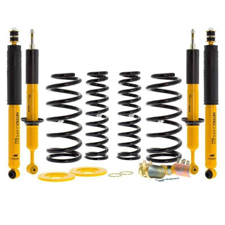 Liftkit van de beste kwaliteit voor Toyota Land Cruiser Prado 150. Verhoogt de hoogte vooraan met ongeveer 40 mm en achteraan met 40 mm. De liftkit omvat: - Schroefveren voor (1 paar 2884) - Schroefveren achter (1 paar 2889) - Nitrocharger sportveer ( 2 stuks 90010) - Sportschokdemper met nitrolader (2 stuks 60080) OPMERKING: Deze hefbrug wordt aanbevolen voor voertuigen zonder bullbar en die ladingen van 0 kg tot GVM vervoeren. Als uw auto over deze uitrusting beschikt en het zal bereiken met een lading van meer dan 200 kg, neem dan contact met ons op.
