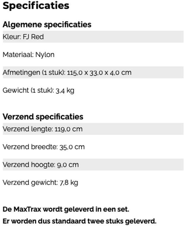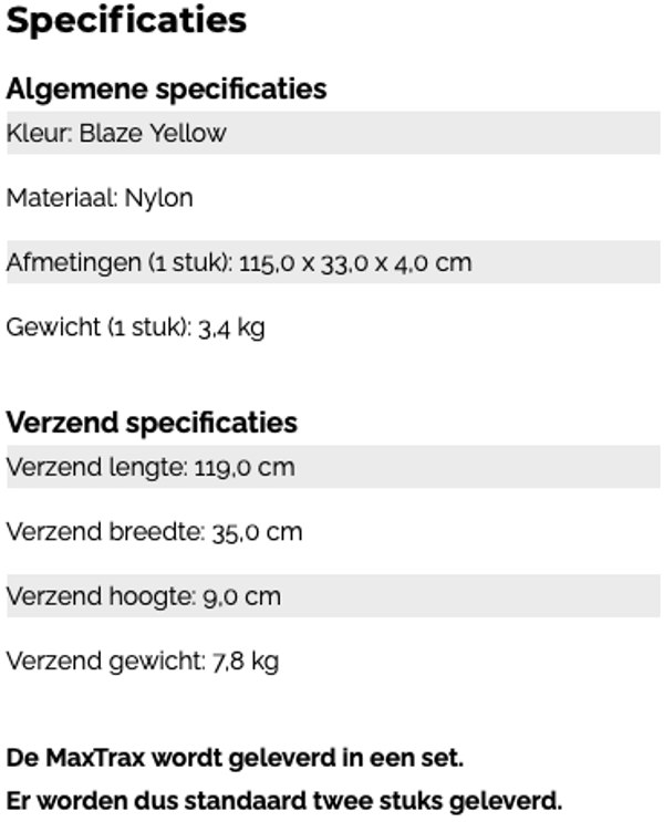 MaxTrax MKII heeft de perfecte pasvorm. Het is mogelijk om twee rijplaten op elkaar te stapelen, hierdoor heeft u minder ruimte nodig met het opbergen.