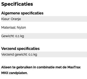 De kit is gemaakt van hetzelfde Nylon materiaal als de MaxTrax rijplaten.