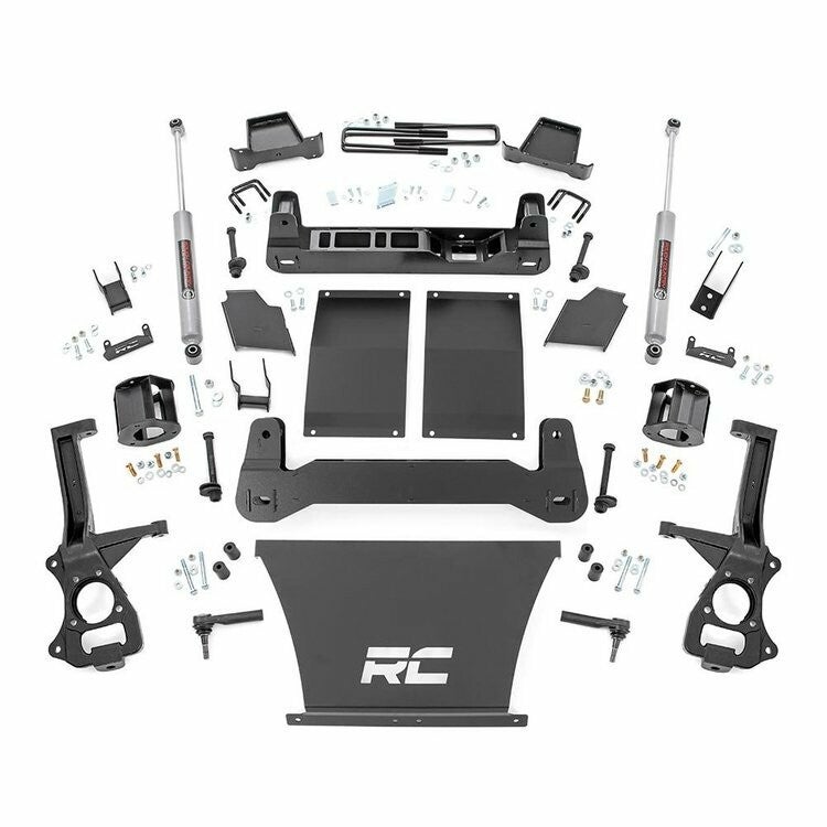 Deze kit heft en egaliseert uw voertuig voor een indrukwekkende houding en voldoende ruimte om 35x12,50 banden op 10 inch brede wielen te laten rijden. Rough Country heeft deze kit ontworpen om een optimale ophangingsgeometrie te bieden met behoud van de fabrieksrijkwaliteit, waardoor je verbeterde offroad-capaciteiten krijgt zonder in te boeten aan de handling en het soepele rijgedrag dat deze truck zo indrukwekkend maakt. De 6 inch ophanglift van Rough Country behoudt de standaard spoorbreedte, waardoor een tot 10 inch breed wiel met een achterafstand van 4,5 inch mogelijk is. Elke kit bevat dwarsbalken voor en achter en een skidplate voor verbeterde chassissterkte en gegoten stalen knokkels voor ongelooflijke duurzaamheid en prestaties.