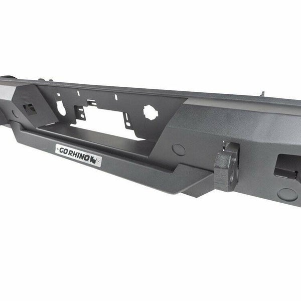 Achterbumper BR20.5 Go Rhino vervanging is een stijlvolle, getextureerde zwarte poedercoat vervanging voor uw achterbumper. Geïntegreerde treden en voorzieningen voor de toevoeging van LED-verlichting maken dit de beste optie voor bumpervervangingen.