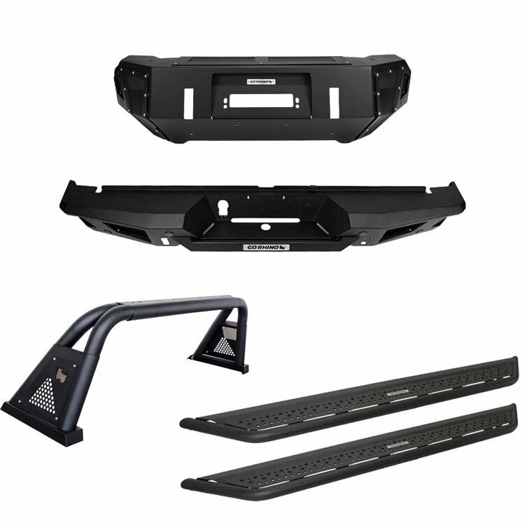 De bundel-upgradekit van Go Rhino omvat voor- en achterbumper, sportbar en zijtreden. Alle elementen zijn gemaakt van hoogwaardige materialen, waardoor ze zeer duurzaam zijn.