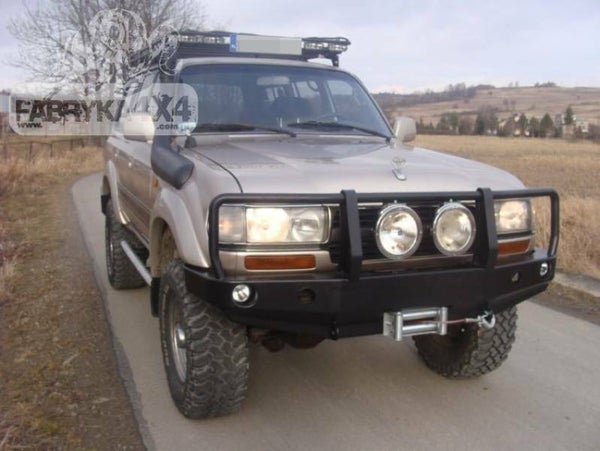 F4x4 VOORBUMPER MET BULLBAR VOOR VERSIE MET KUNSTSTOF FRAME SPATBORD TOYOTA LAND CRUISER J80 89-98