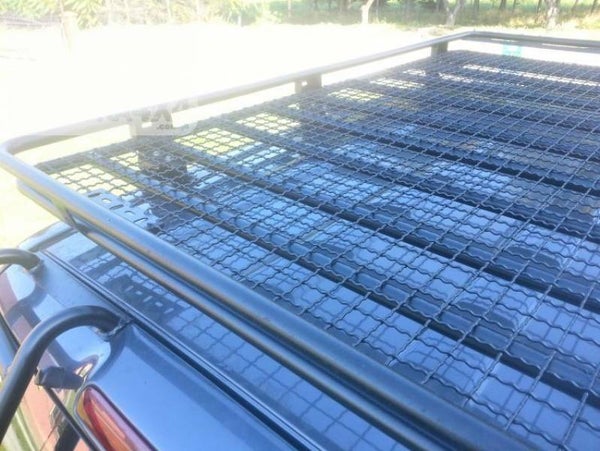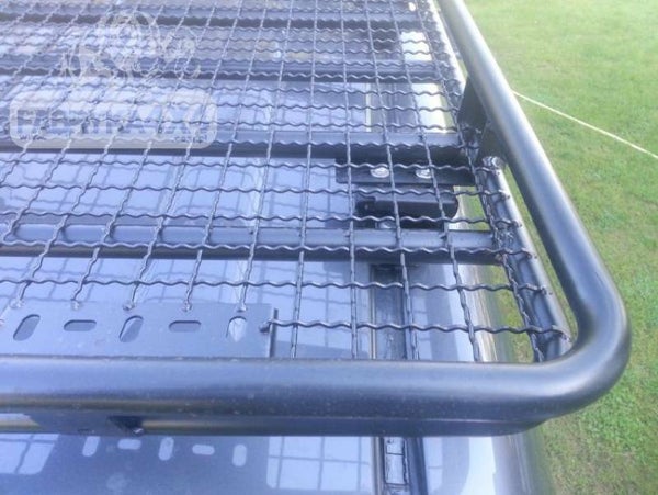 Imperiaal met gaas voor TOYOTA LAND CRUISER J120 02-09. De stam is gemaakt van Ø 25 mm buizen, De stam is gemaakt van Ø 25 mm buizen, bedekt met een gaas met 30 x 30 mm gaas en gepoedercoat. Aan de voorzijde van de bagageruimte bevindt zich een rail voor eenvoudige lampmontage en een houder voor een kentekenplaat. Gedempte oplossingen bevinden zich aan de zijkanten en aan de achterkant van de kofferbak.