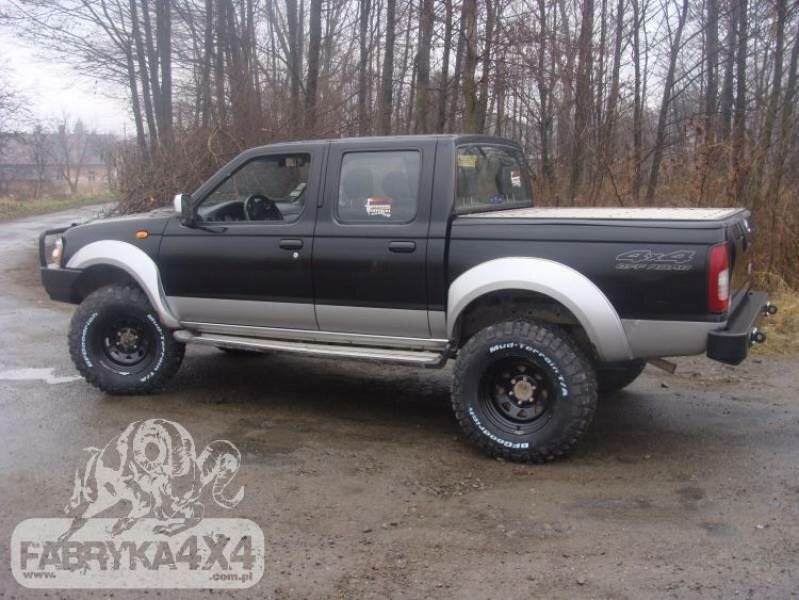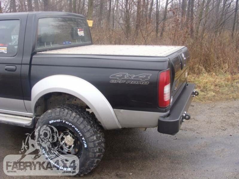 Achterbumper, speciaal voor de auto NISSAN NAVARA D22 01-04. De hoofdstructuur van de bumper is gemaakt van plaatstaal van 4 mm en de framebevestigingen zijn 5 mm dik. Het product wordt eerst met een laser gesneden, vervolgens gebogen op een CNC-afkantpers en tijdens handmatige afwerking wordt de juiste vorm verkregen. De volgende fase is de bescherming tegen corrosie, bestaande uit het aanbrengen van een zinkpoederprimer en poedercoating die de bumper zijn uiteindelijke uiterlijk geeft.